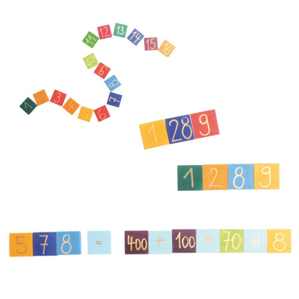 This wooden number chart from Grimm’s Spiel & Holz of Germany features 200 colorful number and symbol tiles which can either be arranged within the included frame, or on any flat surface.