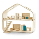 Children will develop socio-emotional skills when playing independently or with friends as they create their own imaginary worlds. The natural wood and simple design make this dollhouse the perfect open-ended playset for preschoolers and school-aged children.